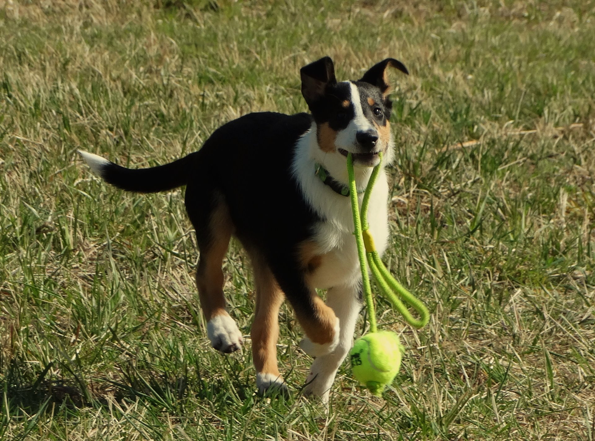 Krisťa.....náš nejmladší přírůstek, ale největší péro a zlobidlo!!! Vydá za tři!!! Syn Barnabášův, ale někdy si říkám, jestli je vůbec možné, aby se takovému kliďasovi narodil takovýhle ďábel.... :D No ano, je, Kristian je totiž po mamince.... A jsem za to ráda..... Vnesl totiž do naší poklidné smečky svěží vítr, no spíš uragán, strašně moc energie, veselosti, radosti, optimismu.... Je to pravý opak Barnabáše, jeho nálady z něj přímo srší ven, dá obrovsky najevo radost, no, vlastně zatím dává najevo jen tu radost, a to je dobře, tak to má být... :) Je to pes, který chce stále něco tvořit, pracovat, učit se nové věci.... Nažhavený, natěšený na práci, hlavně už pojď něco dělat, paničko!!!! Miluje lidi, pro ně by se ukroutil, jak je šťastný, když si ho někdo všímá. Ať ho vezmu kamkoliv, všude se tváří, jako když je tam doma... Tenhle tvoreček má zkrátka v sobě tolik radosti a pozitivní energie, že by ji nám všem mohl rozdávat v hrstích.... Je to prostě malý velký ĎÁBEL, můj velký ÚŽASŇÁK.... :)